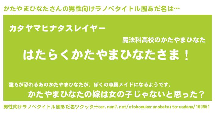 かたやまひなたさんの男性向けラノベタイトル風あだ名をツクッター!