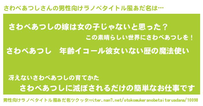 | 女子向けラノベタイトル風あだ名 | 『さわべあつしの玉の輿計画!』 |