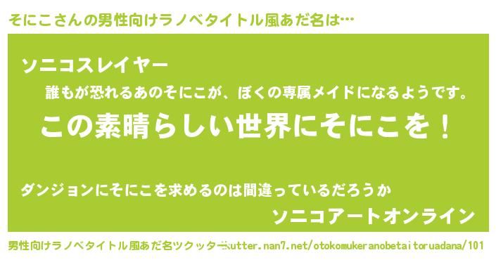 | 女子向けラノベタイトル風あだ名 | 『悪役そにこに転生したようですが、知った事ではありません』 |