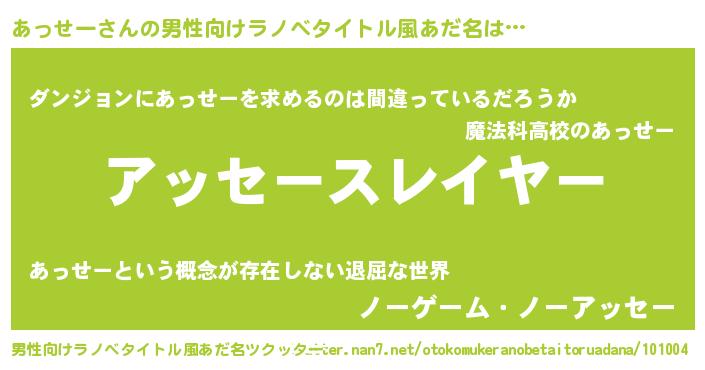 | ヒーロー風カッコイイあだ名 | 『暗黒騎士アッ』『正義の使者あっせー』 |