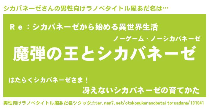 シカバネーゼさんの男性向けラノベタイトル風あだ名をツクッター!