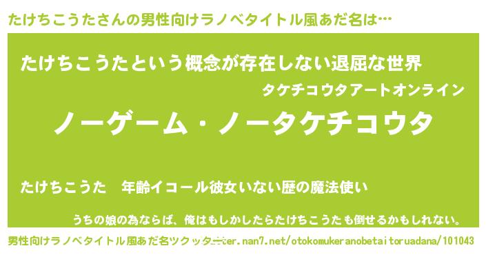 | 伝説のあだ名 | 『救世主となる占い師たけちこうた』 |