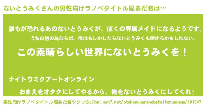 | 胡散臭い通販商品みたいなあだ名 | 『あなたにだけ特別に提供する限定10本のレアな日本酒…その名も「ないとうみく」』 |