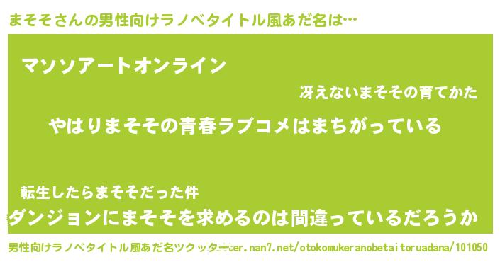 | 女子向けラノベタイトル風あだ名 | 『まそその雑貨屋さん』 |
