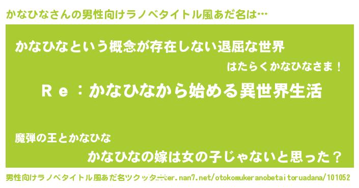 | 女子向けラノベタイトル風あだ名 | 『かなひなストレイドッグス』 |