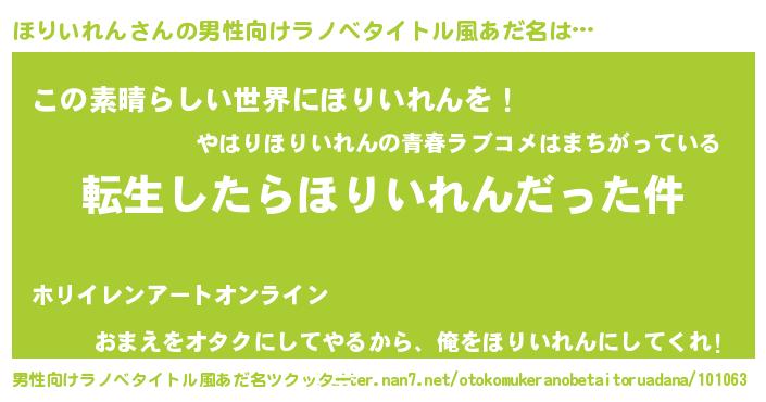 | 女子向けラノベタイトル風あだ名 | 『婚約破棄系悪役ほりいれんに転生したので、保身に走りました。』 |