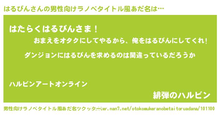 | 胡散臭い通販商品みたいなあだ名 | 『信頼と実績のネックレス…その名も「はるびん」』 |