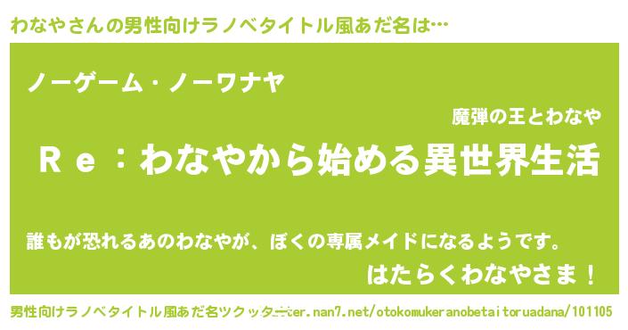 | 女子向けラノベタイトル風あだ名 | 『わなやストレイドッグス』 |