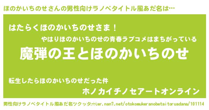 | 意味不明あだ名 | 『住所不定無職ほのかいちのせ(74歳)』 |