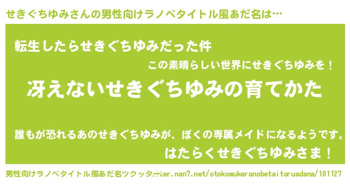 | ヘコむあだ名 | 『せきぐちゆみ(小並感)』『せきっふぃ~』 |