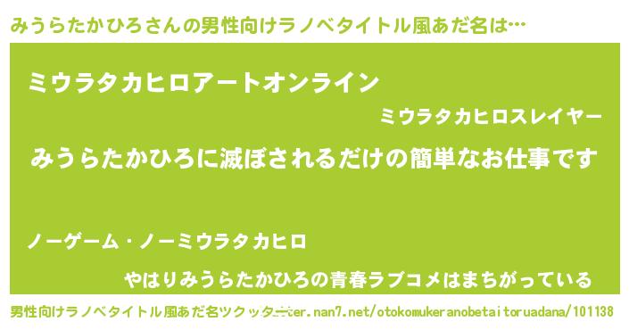 | 伝説のあだ名 | 『封印されし竜騎士みうらたかひろ』 |