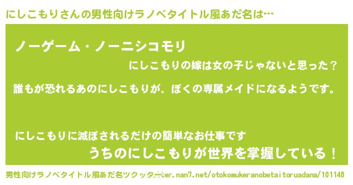 | ヘコむあだ名 | 『にしこもり(笑)』『にしお』『豆乳』 |