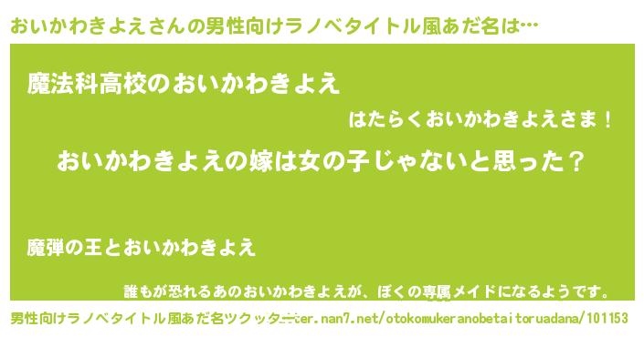 | 女子向けラノベタイトル風あだ名 | 『おいかわきよえの卵を拾いまして』 |