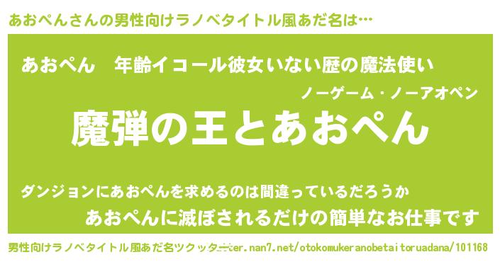 | 意味不明あだ名 | 『住所不定無職あおぺん(53歳)』 |