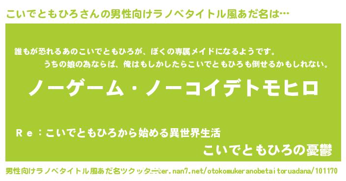 こいでともひろさんの男性向けラノベタイトル風あだ名をツクッター!