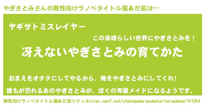 | ヘコむあだ名 | 『やぎさとみ(笑)』『やぎぷりん』 |