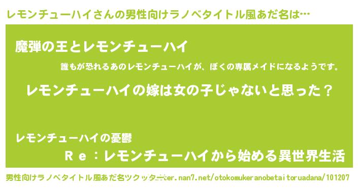 | ヘコむあだ名 | 『レモっぺ』『レモンチューハイ(苦笑)』 |