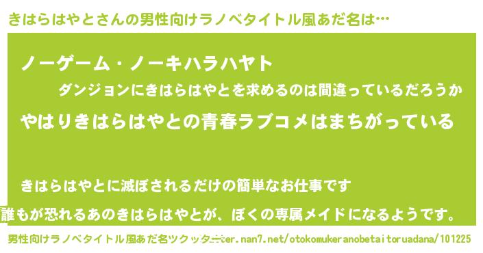 | 意味不明あだ名 | 『きはらはやとフォーエバー』 |