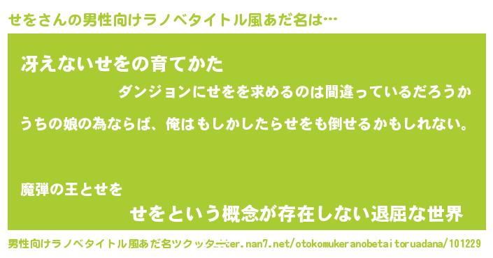 | 女子向けラノベタイトル風あだ名 | 『せをの婚約者』『せをの契約王妃』 |