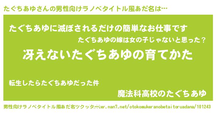 | 胡散臭い通販商品みたいなあだ名 | 『テレビで話題の高麗人参…その名も「たぐちあゆ」』 |
