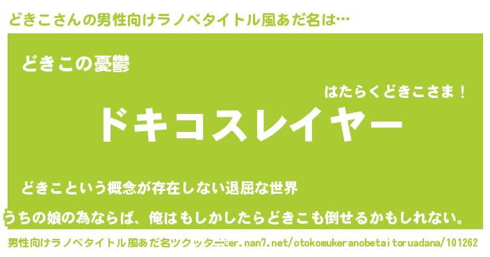 | 胡散臭い通販商品みたいなあだ名 | 『必ず成功する霊験あらたかなお札…その名も「どきこ」』 |