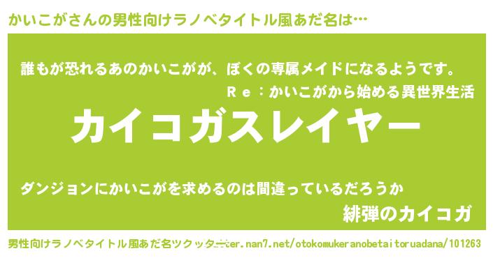 | ヘコむあだ名 | 『かいこが(震え声)』『かいっちょ』 |