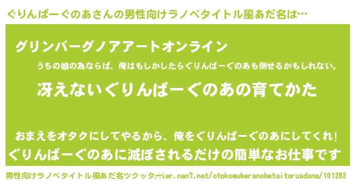 | 女子向けラノベタイトル風あだ名 | 『シンデレラぐりんばーぐのあ家の靴箱館』 |