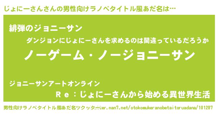 | 女子向けラノベタイトル風あだ名 | 『死神じょにーさんの再婚』 |