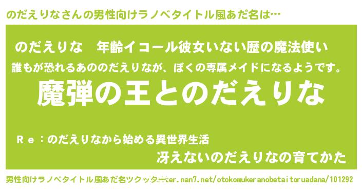 | 意味不明あだ名 | 『住所不定無職のだえりな(77歳)』 |