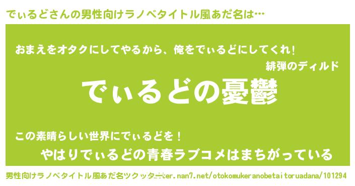 | 女子向けラノベタイトル風あだ名 | 『(仮)でぃるどのやんごとなき事情』 |