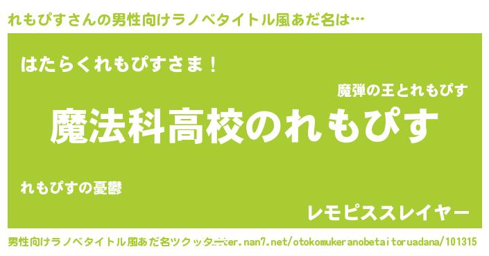 | 意味不明あだ名 | 『自称れもぴす』『めかぶ科れもぴす属』 |