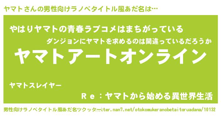 | 女子向けラノベタイトル風あだ名 | 『ヤマト姫と円卓の騎士』『闇のヤマト』 |