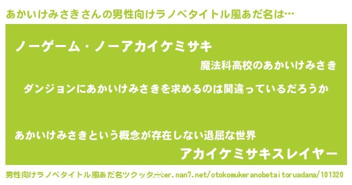 | 女子向けラノベタイトル風あだ名 | 『あかいけみさきは平凡を望む』 |