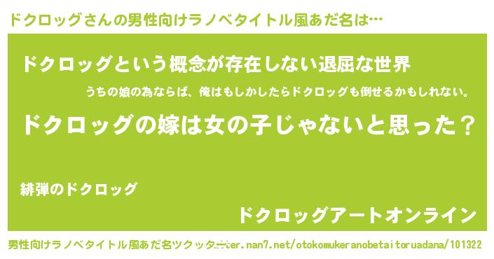 | ヘコむあだ名 | 『ドクお』『ドクロッグ(笑)』『豆乳』 |