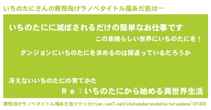 | 女子向けラノベタイトル風あだ名 | 『いちのたにの卵を拾いまして』 |