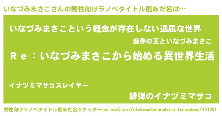 | 意味不明あだ名 | 『自称いなづみまさこ』 |
