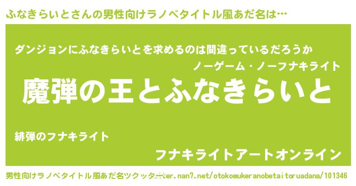 | 伝説のあだ名 | 『孤高の僧侶ふなきらいと』 |