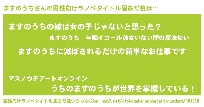 | 胡散臭い通販商品みたいなあだ名 | 『全米が絶賛したサプリメント…その名も「ますのうち」』 |