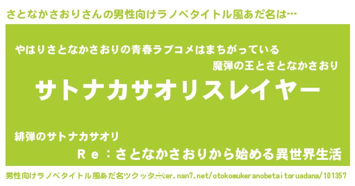 さとなかさおりさんの男性向けラノベタイトル風あだ名をツクッター!