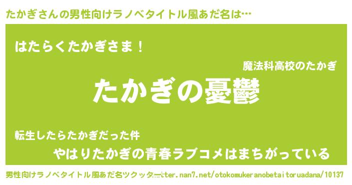 | 胡散臭い通販商品みたいなあだ名 | 『モテモテ間違いなし霊験あらたかなお札…その名も「たかぎ」』 |
