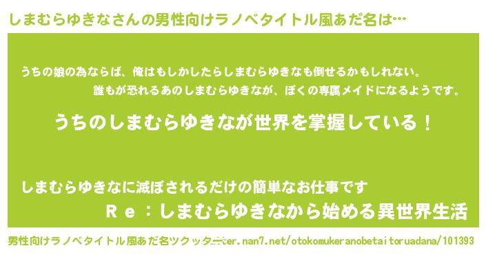 | 女子向けラノベタイトル風あだ名 | 『男装しまむらゆきなの憂鬱な任務』 |