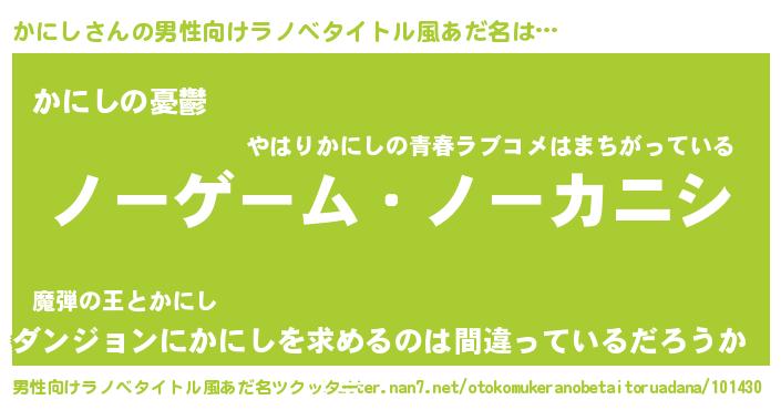 | 女子向けラノベタイトル風あだ名 | 『死神かにしの再婚』 |