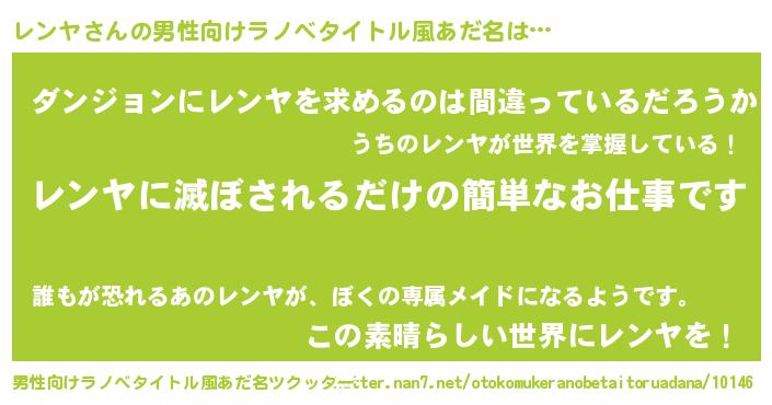 | 胡散臭い通販商品みたいなあだ名 | 『伝統あるサプリメント…その名も「レンヤ」』 |