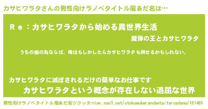| 胡散臭い通販商品みたいなあだ名 | 『運命の人と巡り会える高級そうな皿…その名も「カサヒワラタ」』 |