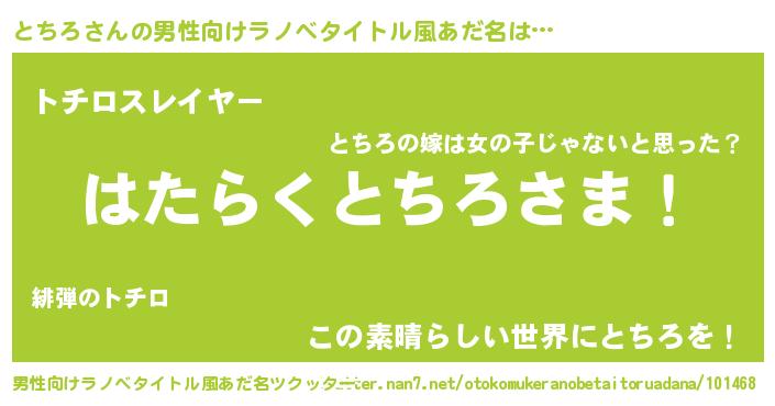 | ヘコむあだ名 | 『とちぷりん』『とちろ(爆)』 |
