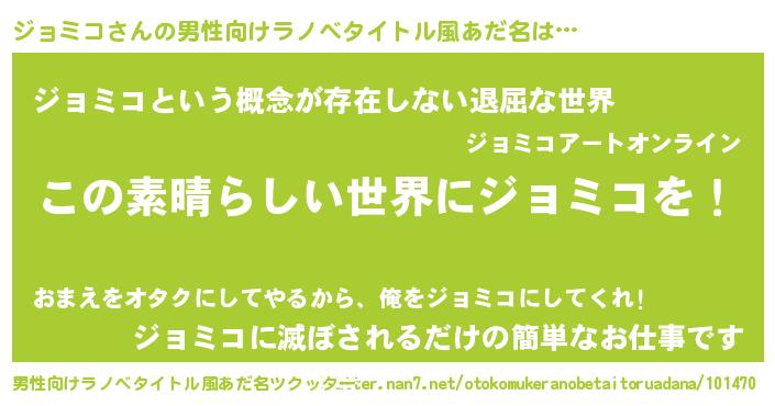 | 意味不明あだ名 | 『住所不定無職ジョミコ(11歳)』 |