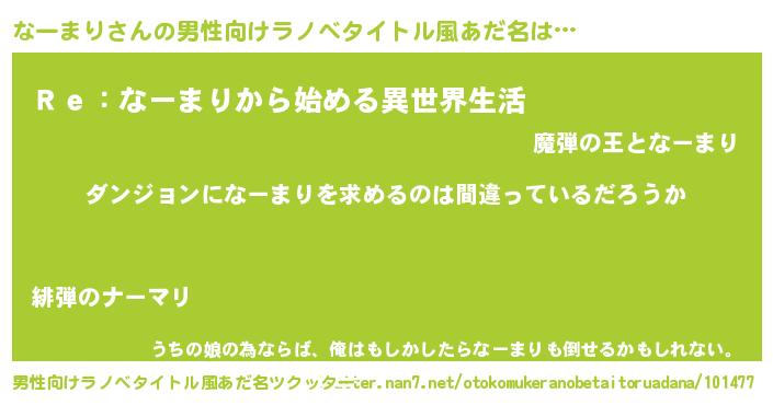 | 女子向けラノベタイトル風あだ名 | 『なーまりは平凡を望む』 |