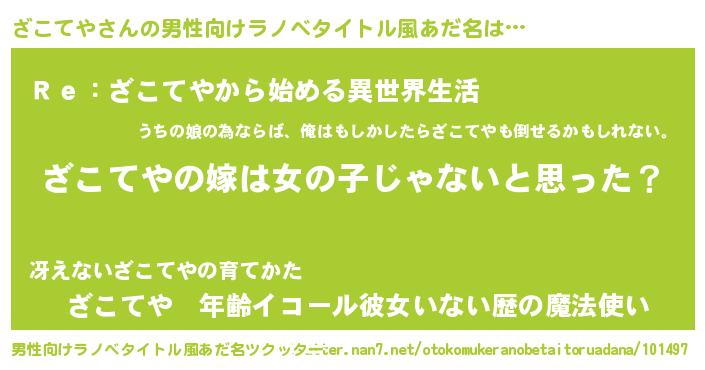 | 女子向けラノベタイトル風あだ名 | 『ざこてや様がみてる』『闇のざこてや』 |