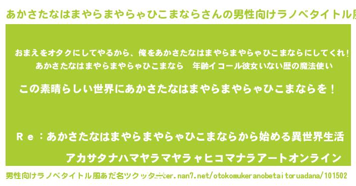 | 意味不明あだ名 | 『住所不定無職あかさたなはまやらまやらゃひこまなら(50歳)』 |