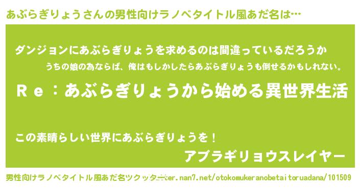 | 女子向けラノベタイトル風あだ名 | 『闇のあぶらぎりょう』 |